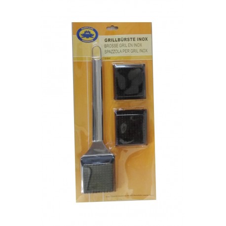 Brosse en inox avec tête remplaçable. Vendu avec 2 têtes de rechanges. Longueur : 42 cm.