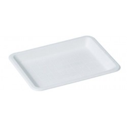 Assiette rectangulaire Karo en canne à sucre blanche. Dimensions : 26 x 13 cm. Paquet de 50 pièces.