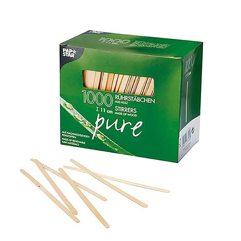 Bâtonnet à café en bois naturel. Longueur : 11 cm. Paquet de 1'000 pièces.