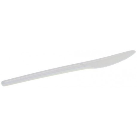 Couteau en CPLA blanc. Longueur : 16,8 cm. Paquet de 50 pièces.